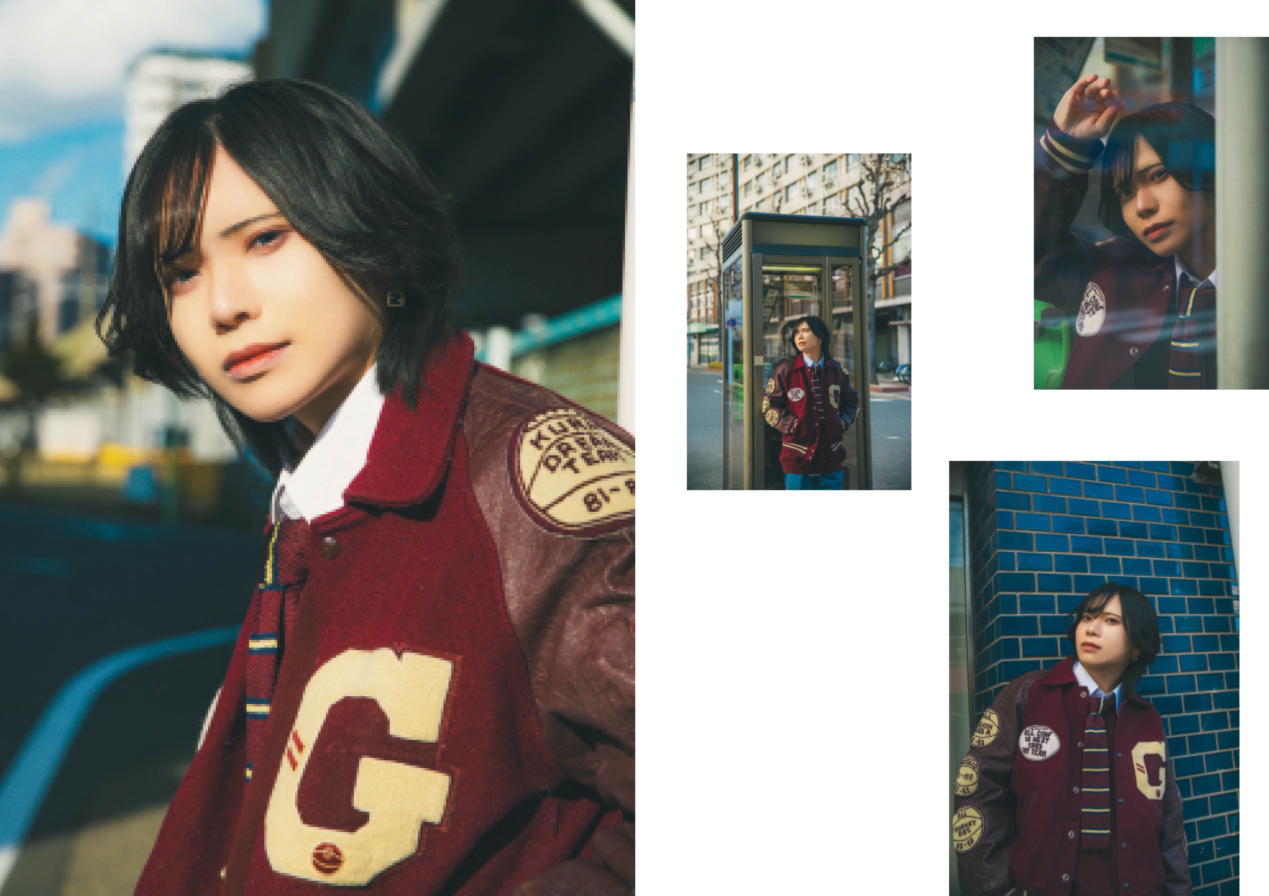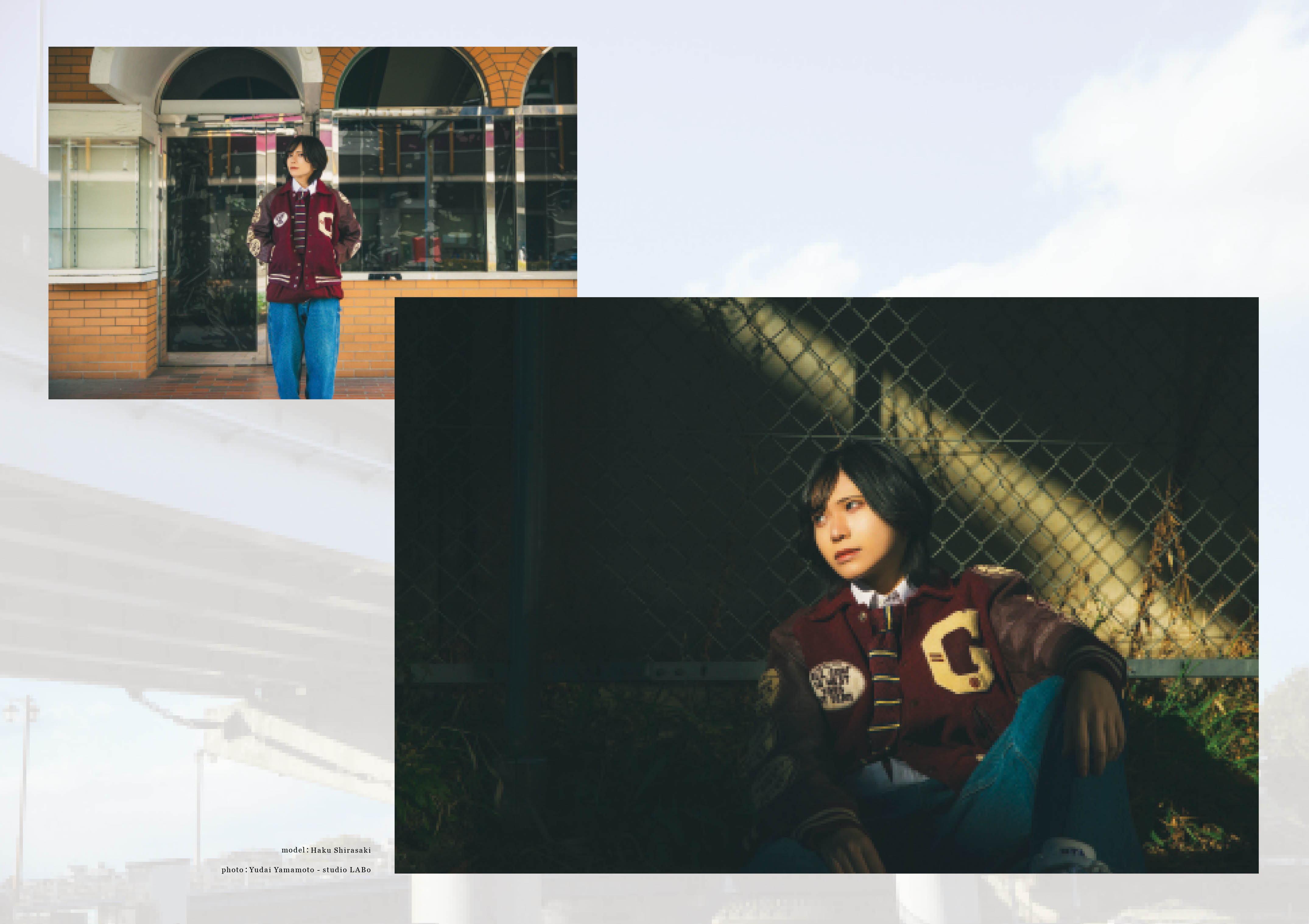 ロケ撮影では、レトロな街並みの中、冬の日差しと爽やかな風に包まれるハクさんをお届けしています。